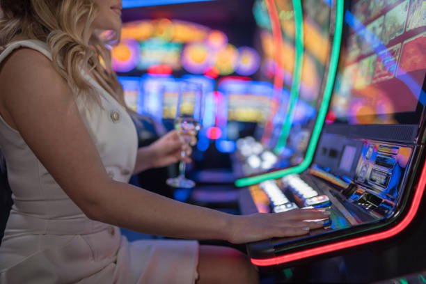 beautiful girl drinking wine alone at casino